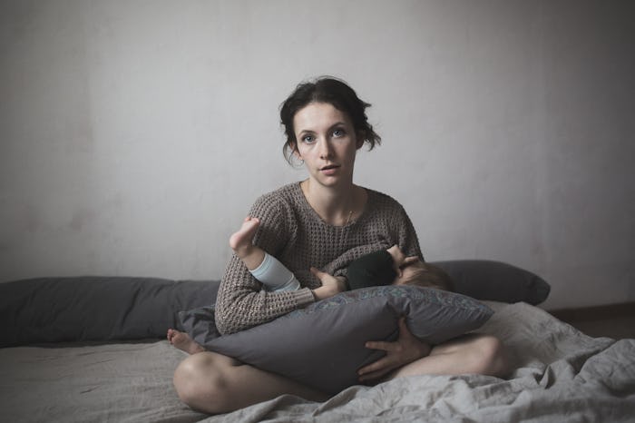 In my spit-up crusted tee shirt and yoga pants with a hole in the crotch,