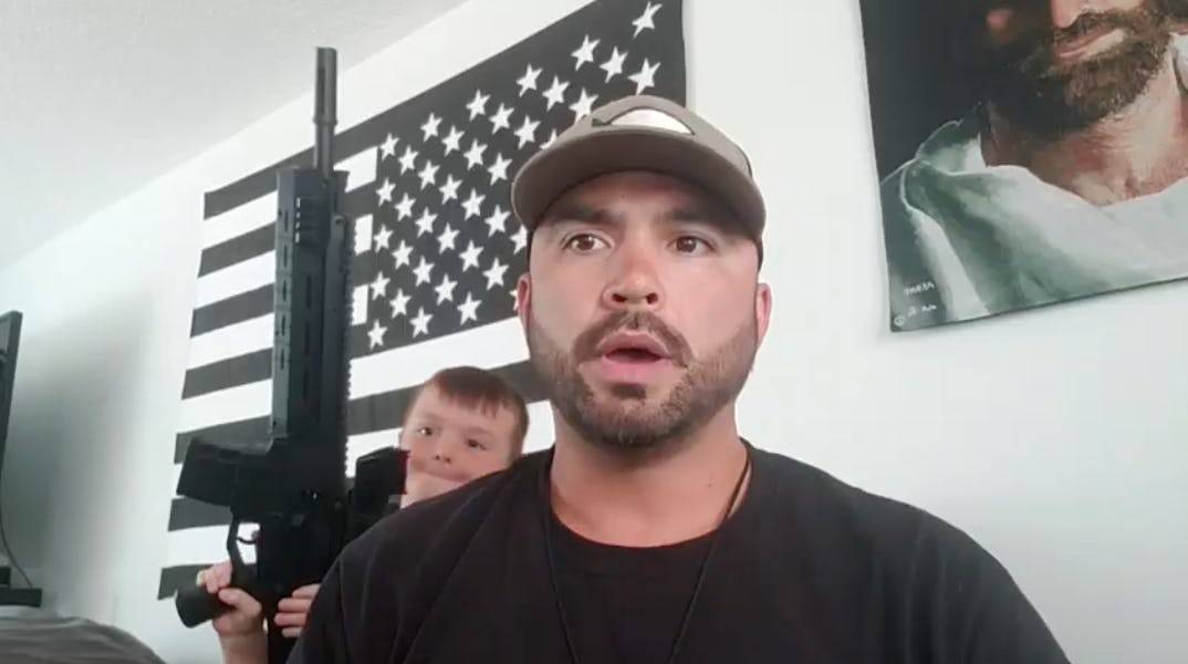 The man in the video is Joey Gibson, a senatorial candidate whose platform is built on a concept of "freedom first," according to his official website. Along with being a supporter of the Second Amendment, his other listed causes include "individual rights," "fair tax," "term limits," and more. However, the video that he posted to Facebook Live drew more attention to his parenting style than his political beliefs.