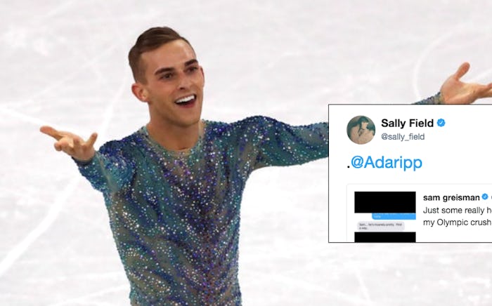 The world has fallen in love with Olympic figure skater Adam Rippon, but one celebrity has been hilariously pushy about locking him down. See, American treasure Sally Field wants the Olympian to date her son and now, Adam Rippon's response to Sally Field attempting a set-up is priceless. Please let this be the start of a timeless romance.