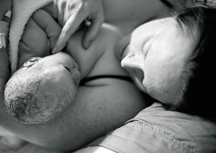 I opted to not have any Pitocin for the afterbirth because I wanted the contractions my uterus caused to do the work, and at first glimpse, that's what seemed to happen. My placenta came out and my uterus was contracting and going down, all as it should. I stayed in bed with the baby for an hour, nursing her, and having my blood pressure checked every 15 minutes, as was hospital protocol.