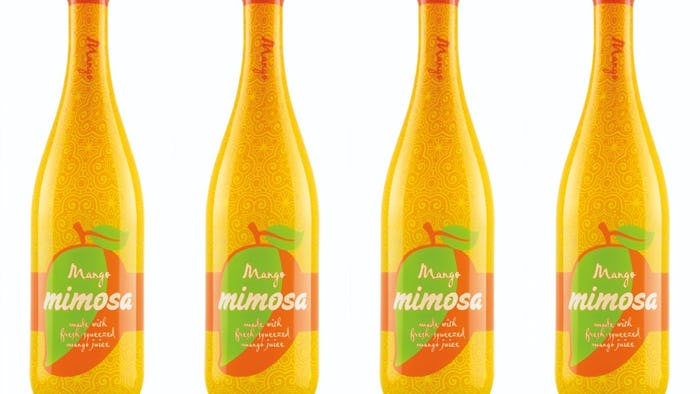 Last spring, Aldi debuted a classic orange juice version of their bottled mimosas, and let's just say that life has never been the same. The grocery store chain, known for low prices, double seater carts (lookin' at you mom of two under 2 — been there, done that), and plenty of products that make our lives tastier, has since released multiple flavors of our favorite brunch cocktail. In addition to the traditional orange juice concoction, Aldi added pomegranate juice and pineapple juice variations to their lineup of boozy bottled drinks. And now, they're coming in hot with an all-new mango flavor just in time for all of your favorite summer activities.
