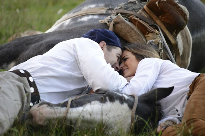 JoJo and the guys are still in Argentina, and of course when you're in Argentina, you have to go on a date to a horse ranch. Right? Apparently, because that's how JoJo and Alex spent their solo time together. They were greeted by gauchos, a national symbol of Argentina who according to Wikipedia are typically skilled horsemen. While the couple was told that you had to be born a gaucho and could not become one, which somewhat disappointed JoJo, but she prevailed. Thankfully, they allowed Alex to dress like them (though looking a lot less dignified).