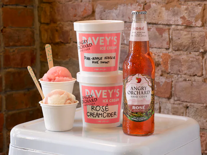 What is it about ice cream that makes everyone instantly revert to the giddy wonderment of childhood? From the first lick of a cone, it's as though I can shove off all my stress, if only for a minute. Sometimes I want that feeling to last just a bit longer, and do you know what helps even more than ice cream? Booze. Thankfully, the geniuses at Davey's Ice Cream and Angry Orchard came up with a way for me to combine the joy of ice cream and the mellow chill of rosé with Angry Orchard Rosé Cider ice cream — possibly the most perfect summertime refreshment.