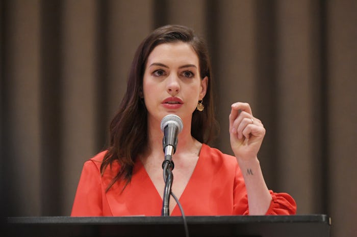 On March 8 — International Women's Day — Hathaway, a U.N. Goodwill Ambassador, gave a speech at the U.N. advocating for paid parental leave amid the many limitations of the United States' policy. Throughout the speech, the 34-year-old mom, who wore a symbolically red dress, talked about being a first time mom herself and the economic struggles many families face after welcoming a child. She went on to address how traditional gender roles are damaging to society and how paid parental leave can boost female empowerment and give fathers the opportunity to be more involved.