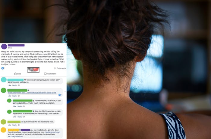 "The driving force behind the main anti-vaccination movement is social media," Konkrasang, a full-time student living in Tennessee and married to an active-duty soldier, tells me. "It’s Facebook — it really is Facebook. There’s stuff on YouTube, but the driving force behind it is Facebook." In March of this year, Facebook vowed to combat the spread of anti-vaccination misinformation and pseudo-science by "reducing the distribution of misleading medical advice and relying on vetting from leading global health organization that have publicly identified verifiable vaccine hoaxes," as reported by NPR. And in February, YouTube banned channels that promote anti-vaccination messaging from running advertisements, according to The Hill.