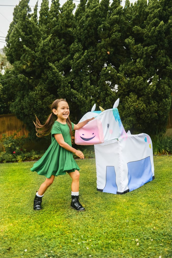 The unicorn building set is brought to you by Antsy Pants, whose creators saw kids spending increasingly more time inside and in front of a screen, so they “set out to make an impact by creating an interactive product that encourages imagination and limitless play,” per the Antsy Pants website. Their products are fun and interactive (think fire truck tents, flamingo kites, and a pop-up pet clinic).