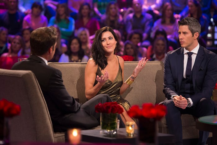It's not totally unheard of for ex couples from The Bachelor franchise to remain cordial, and even friendly in subsequent seasons of the show. For example, Andi Dorfman showed up in the final moments of Nick Viall's season to give her ex some last-minute advice as he geared up to propose, and they seemed to genuinely, platonically care about each other. But after last season's gut-wrenching Bachelor finale, fans may be wondering: are Becca and Arie friends now? Is that even possible after he dumped her two months into their engagement for Becca's runner-up, Lauren B.? During the After the Final Rose special, Becca and Arie had a frank heart-to-heart which showed that they were civil with each other, but both very focused on moving forward. Based on subsequent interviews, however, it seems like things are pretty icy between the pair.