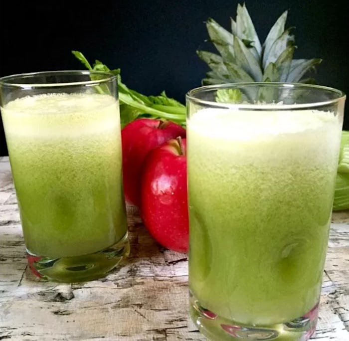 That's not to say I haven't tried it. I absolutely have. Not straight celery juice, that's just madness, and I cannot afford any more of that. Nope, I mix mine with pineapple, cucumber, and a few other things and drink it for chronic bloating. While it does seem to help my rumbly tumbly, it could 100 percent be the placebo effect. If so, the placebo is delicious and would probably taste wonderful with a splash (or five) of gin to carry the grassy flavor into Tipsyville where you don't care about the health benefits one lick.