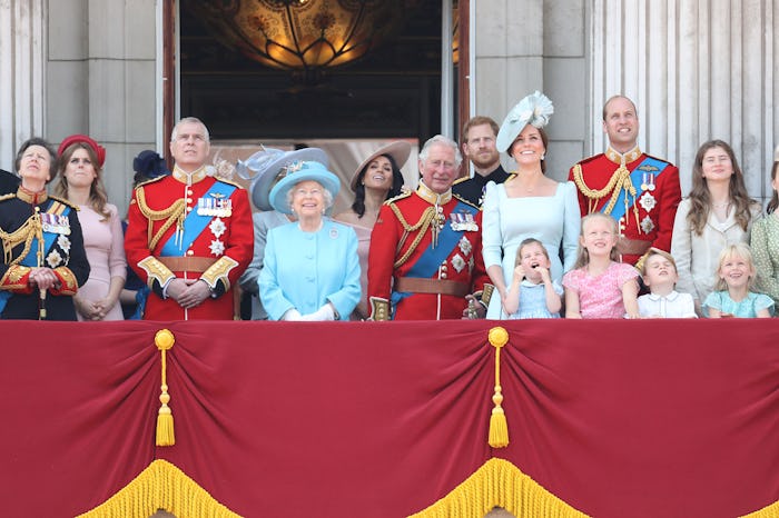 This time around, 4-year-old Prince George and 3-year-old Princess Charlotte were joined on the balcony of Buckingham Palace by another little royal partner-in-crime. The great-granddaughter of Queen Elizabeth, 7-year-old Savannah Phillips. Her parents are Peter and Autumn Phillips and her grandmother is Princess Anne. The 7-year-old stood between the two children of Kate Middleton and Prince William and totally hammed it up for the cameras. Which had Prince George laughing hysterically whenever he could. The best moment came when Savannah managed to eyeball a camera, look the whole world dead in the eye, and cover Prince George's mouth as he tried to sing along with "God Save The Queen." She did so with a look that can only be described as chilling. But hilarious.