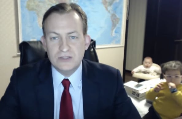 It was the viral video heard round the world on Friday; Robert E. Kelly, a professor of political science at South Korea's Pusan National University, was being interviewed from his home by the BBC when his children decided to crash the party. If you've ever worked from home and tried your hand at work/life balance, you get it. Actually, if you have children and try to get anything done like, ever, you get it. Kelly was one of the lucky ones; a woman comes in at the end of the video to give him a hand. And far too many people on the internet seem to be assuming the woman in the BBC Dad video is the nanny. No evidence needed, apparently.