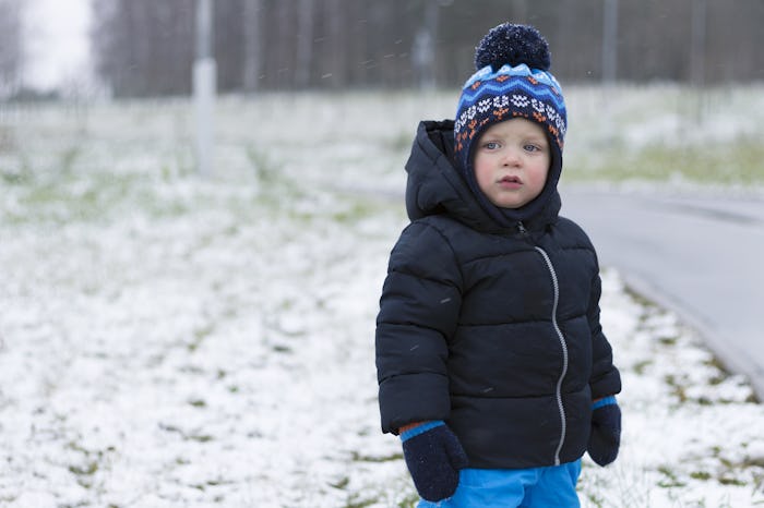 According to the AAP, the danger in cold weather for your toddler depends a lot on if you know how to appropriately bundle your baby. The organization suggested using several thin layers, and possibly a snowsuit. This will keep them dry and comfortable. Make sure their boots are waterproof and their gloves are insulated, too. None of those thin stretchy things for the coldest days. The key is that they should be dry, not sweating, and their core should be slightly warmer than their extremities. Their fingers shouldn't hurt or go numb, and the same goes for their toes. If it's really cold, go in every 20 to 30 minutes to warm up a bit before going back out.