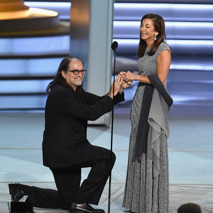 When Glenn Weiss won the Emmy for outstanding directing for a variety special, he used his acceptance speech to propose to his girlfriend, Jan Svendsen. The crowd went wild.Variety reported that backstage at the Emmys, the couple explained they’d worked together for about 10 years since they met in 2001. Considering their experience working on awards shows, what better place to get engaged? The proposal was the gift that kept on giving, because throughout the Emmys audience, famous actors showed their support for the impromptu display of true love. And those people really know how to emote.