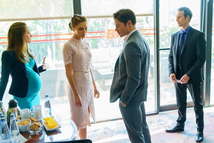 E!'s newest scripted series, The Arrangement, follows the lives of Megan Morrison (Christine Evangelista), a young starlet who's trying to make it in Hollywood, and Kyle West (Josh Henderson), a big movie star who's also a member of the Institute of the Higher Mind. While their love story is the focal point of the show, the side characters also have their own interesting storylines going on. For example, Megan's agent Leslie Bellcamp, played by The OC's Autumn Reeser, is juggling her job while also being very pregnant. During an email conversation with Romper, the actress explained why she loves playing a badass pregnant lady on The Arrangement and her reasoning is pretty perfect.