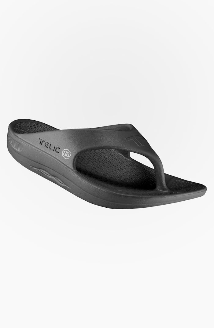 Belly Bandit x Telic flip flops are designed for medium to medium-wide feet, and sizing up is recommended if you have an especially wide foot (that would be me, my feet are so wide I could only fit into ballet shoes until the age of 3). My personal favorite feature is the textured footbed, which feels like a mini massage every time you take a step. These sleek, black sandals also fit seamlessly into any wardrobe (I wear black constantly, even on 95 degree days, so I’m personally excited that these come only in my favorite shade).