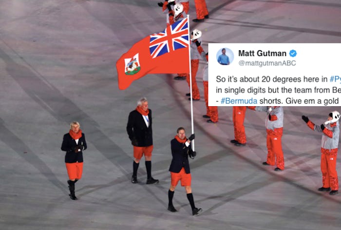 At the Olympics opening ceremony, it is important for every country to put their best foot forward, and wear uniforms that truly represent their nation. Perhaps that is why Bermuda wore shorts to the opening ceremony, even though it is literally freezing in PyeongChang right now. That is commitment to an aesthetic and I am completely here for it. I respect you, athletes of Bermuda in your Bermuda shorts.