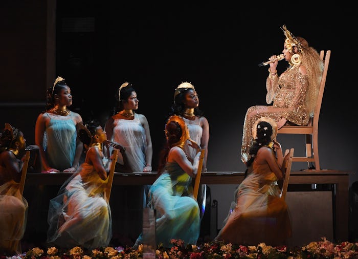 In case you're somehow still unaware of this fact, Beyoncé is The Queen of all things, which was further proven during her 2017 Grammys performance. Sure the anticipation of the performance may have been pretty high to begin with, but that's nothing compared to what it was like when it actually happened. It contained everything you'd ever hope to want in a performance, including an interesting part involving a chair. So naturally, the internet took ran with it. Once it occurred, Beyoncé chair memes at the 2017 Grammys could be seen all over Twitter, and just like Bey herself, it was pretty amazing.