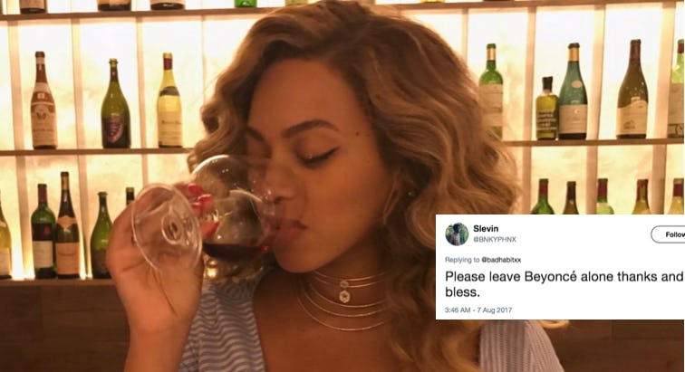Hold up, this is not cool. On Friday, Beyoncé posted an Instagram photo of herself looking gorgeous and relaxed while on a date night with her husband Jay-Z. But now, people are mom-shaming Beyoncé for the dumbest reason. In the photo, she appeared to be drinking red wine, and some commenters got into a snit wondering whether or not she was still breastfeeding her twins. Hey mom-shamers: let Queen Bey be!
