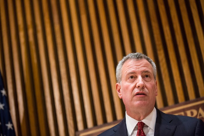While you were spending your weekend Netflix and chilling, riding the wave of emotions that comes with a third Friday Night Lights binge-watching session (just me?), New York City Mayor Bill de Blasio was also enjoying an emotional roller coaster of a weekend. Starting off the weekend Friday with a Morning Joe appearance on MSNBC that finally — finally! — led to de Blasio endorsing Hillary Clinton, the mayor was making headlines for all the right reasons, until he spent Sunday night broadcasting his love on Twitter for the Red Sox... during the Mets World Series game... that the Mets lost.