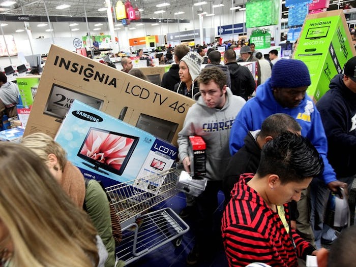 Black Friday shoppers are the worst humanity has to offer (in my opinion, of course, of course). I myself worked Black Friday in a big box store back in the early aughts, right when it was starting to become A Thing. My job was simply to stand in the middle of the store, dead center, and wait for people to ask me questions. But what they were more interested in was stomping on my feet and ramming me with shopping carts. I ended up spending my shift standing on a shelf for my own protection.