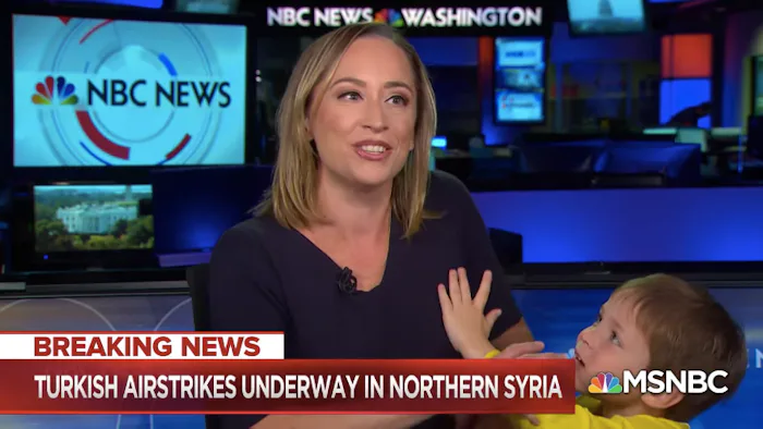 On Wednesday morning, NBC News' national security and Pentagon correspondent Courtney Kube handled an adorable interruption by her young son like the bad*ss working mom and rockstar she is. To set the scene, Kube was in the middle of a breaking news broadcast about the Turkish military's offensive in northern Syria, according to E! News, when one of her 4-year-old twin sons, Ryan, meandered onto the set and started adorable trying to get her attention. Kube paused her report and acknowledged, "Excuse me, my kids are here. Live television," before picking back up where she left off.