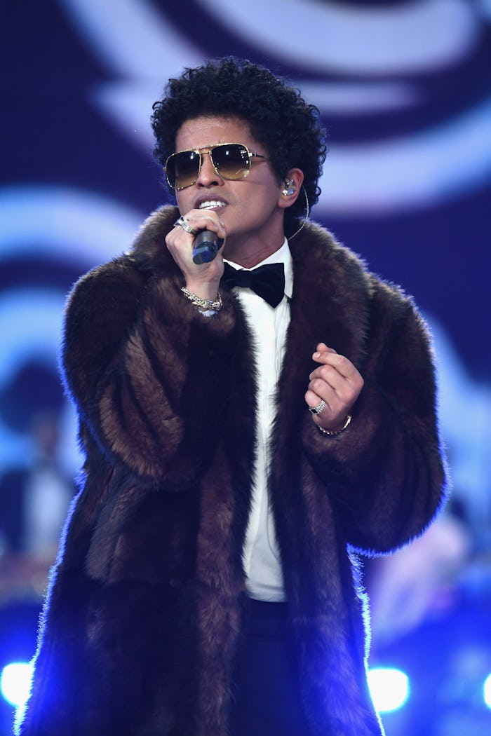 The aptly titled 24K Magic album, which was released just weeks ago to Mars' ever-growing and exploding fanbase, has thrust the funky, fresh pop-music star into a world of exciting celebrity. Not only was "24K Magic" a chart topper (it was "on track" to make a top 10 debut on the Billboard Hot 100 chart, according to Billboard.com, and thoroughly enjoyed a No. 2 debut on the Billboard + Twitter Top Tracks chart just two weeks after its initial release), but it's also been in hot demand: two weeks ago at the AMAs, Mars performed "24K Magic" and he's slated for a world tour: 24K Magic, kicking off in 2017.