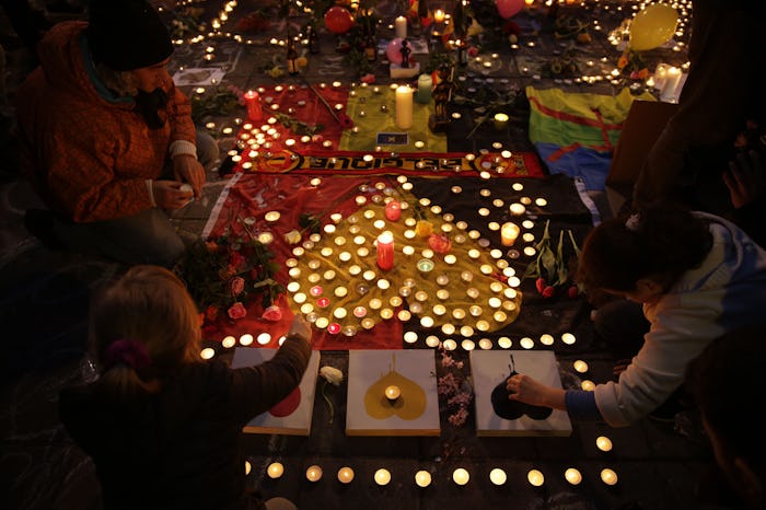 On Tuesday morning, the people of Brussels were struck by tragedy when three explosions throughout the city left 34 dead and more than 170 people injured. The first two attacks occurred at Brussels' Zaventem Airport around 8 a.m. local time. The second explosion took place about an hour later at a Belgium subway station near the suburb of Maalbeek. As with any tragedy of this nature, people around the world have come together to show support for the victims and citizens of the attacked country. And the biggest signs of support can be found in the Brussels tributes on social media.