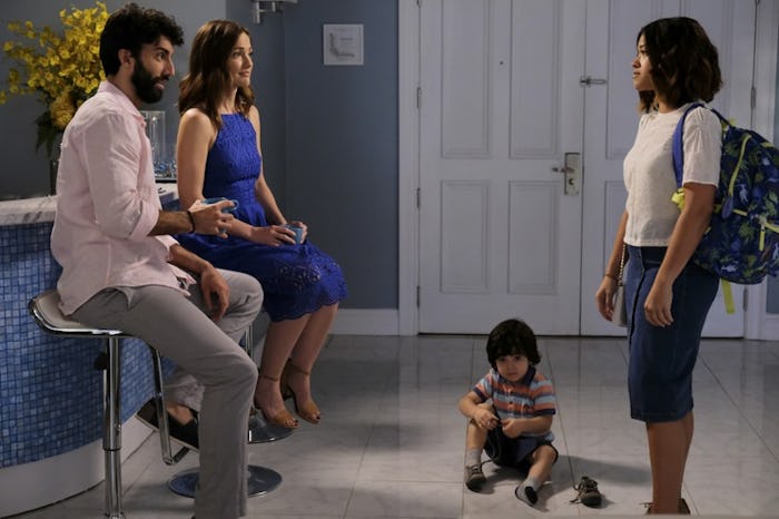 The three-year time jump on Jane the Virgin brought in some new characters, including a new girlfriend for Rafael. Abbey, the owner of a greeting card company, has been scarce on the show thus far and the narrator has been hinting there's a reason for that. So can Abbey be trusted on Jane the Virgin? Honestly, probably not.