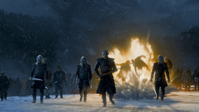 But if that's the case, then why didn't the Night King die thousands of years ago? According to legend, he was defeated by Brandon (the Breaker) Stark around 8,000 years ago, after he fell in love with a woman with "eyes like blue stars" who's skin was "cold as ice," — so, a White Walker presumably — declared himself Night's King and committed such atrocities that, since his defeat, it was decreed that his name was never to be spoken again. But, if he's back now, does that mean he was never killed? Does that mean it's impossible to kill him? What might that imply about the consequences of the Night King's death? Would that be the end of all White Walkers?