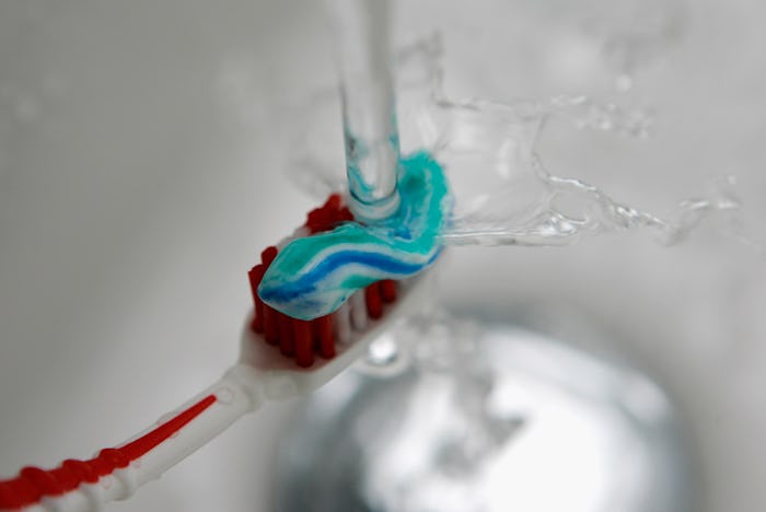 Whether you're praying it's positive or hoping against hope it's negative, one thing you definitely want your pregnancy test to be is accurate. So, as a weird trend of dubious origin proliferates on the internet and, apparently, the bathrooms of potential moms-to-be, this is your friendly PSA that toothpaste can't actually tell you you're pregnant. Still, there's been an uptick in Google searches for "toothpaste pregnancy test" lately, and a glut of blog posts and YouTube tutorials have cropped up to show women how to pull off this DYI method. But if women are actually looking to their Crest to let them know whether they're expecting, it's definitely time to head to a different aisle of the grocery store for an actual pregnancy test.