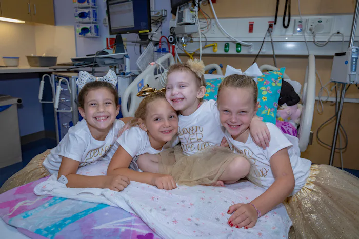 Dressed up in matching gold tutus and white t-shirts that read "Never, ever give up" in sparkly gold glitter, the girls got to play together, draw on the windows of Lauren's hospital room, and play "Ring Around the Rosie."