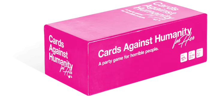 We decided that hey, it’s 2017, it’s time for women to have a spot at the table, and nevertheless, she persisted. That’s why we made Cards Against Humanity for Her. It’s trendy, stylish, and easy to understand. And it’s pink. Women love the color pink.