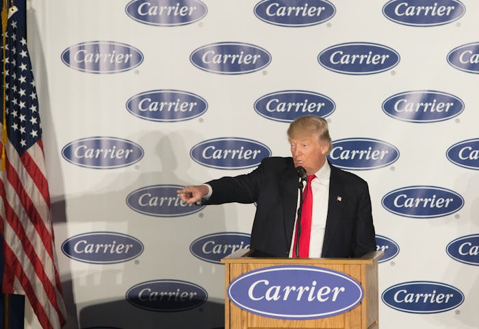 Trump is tying his celebratory tour of the Indianapolis Carrier plant in with the launching of his "thank you tour," during which he'll host campaign-style rallies in primarily midwestern states that were instrumental in electing him. There's no doubt that the news of the Carrier agreement will invigorate what amounts to a victory lap among blue collar workers whose jobs and livelihoods Trump has pledged to protect. The compromise can come off as merely symbolic, though, when a closer inspection reveals that about 300 of the jobs Trump "saved" weren't actually slated to go to Mexico, according to the Journal, and that Carrier still plans to ship about 1,300 jobs to our southern neighbor anyway — closing an entire second Indiana plant in the process. (And, as NPR reported, 1,000 jobs represents less than 0.01 percent of the country's manufacturing jobs.)