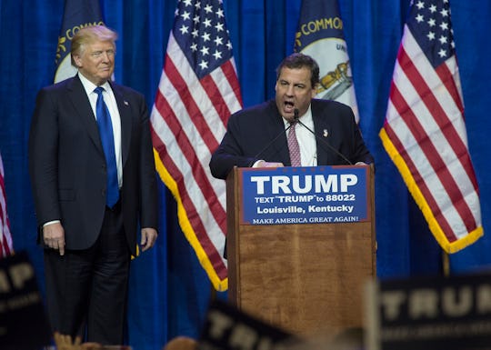 If there's anything more bizarre than imagining Donald Trump actually winning the GOP presidential nomination, it's New Jersey Gov. Chris Christie's face behind Donald Trump on Super Tuesday. Christie — who recently made many a headline for endorsing Trump after dropping out of the race himself — introduced the candidate following Trump's many Super Tuesday wins, and expressed confidence in him. Not to mention confidence in Trump's "movement," as Christie called it. Not that he seemed altogether happy about that movement.