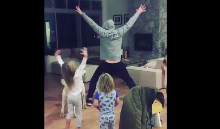 Hemsworth took to his Twitter account to share the perfect family clip, in which he and kids India Rose, 6, and twins Trista and Sasha, 4, all thrashed around while lip syncing to his soon-to-be sister-in-law Miley Cyrus' hit "Wrecking Ball." (To be honest, who hasn't?) People reported that he and his pajama-clad kids seemed to be having such a good time that the clip even ended with their family dog barking at Chris, seemingly concerned that something was wrong.