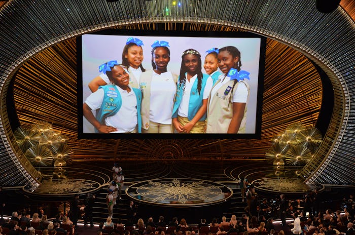 In a completely amazing plug for the national non-profit organization for young girls, Rock spoke about how he was spending so much time away from his two daughters in prepping for his Oscars hosting stint. "I have missed most of Girl Scout cookie season," the 51-year-old comedian confessed. He then pled, on behalf of his sash-wearing daughters, that Hollywood help his daughters' Girl Scout Troop sell the most cookies this year, and then his daughters' troop actually started selling Girl Scout cookies right then and there. A small group of Girl Scouts, presumably including Rock's two daughters, Zahra and Lola, then started making their way through the star-studded crowd, doling out Thin Mints, Tagalongs, Trefoils, and Samoas.