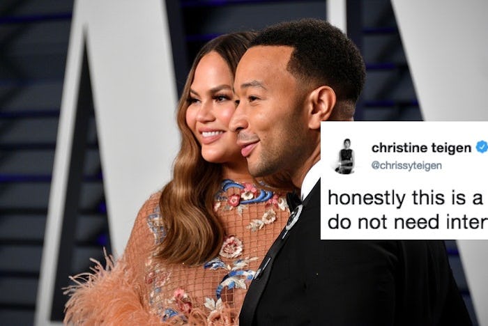 Now, Legend's no stranger to ribbing from Teigen, though, and he always takes it in stride. Teigen loves to take a jab at her beau online. One of her more recent public barbs included joking about the paternity of their son Miles, who's basically Legend's twin. According to People, the model posted a photo of her baby boy wearing a tuxedo on Valentine's Day, which Legend replied to with, "He is me."