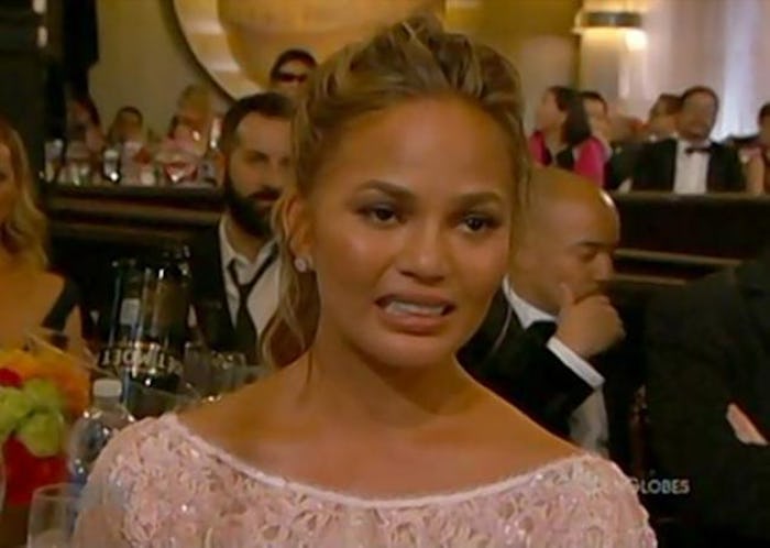 The camera panned over to Teigen last year when her husband, John Legend, won the Golden Globe for Best Original Song for his work on "Glory," and Teigen was — rightfully so — emotional. She was proud of her husband, and she started to cry. And she just happened to be in a room full of cameras at the time, meaning there was no escaping the lens.
