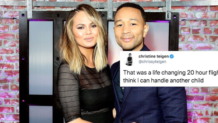 While this isn't the first time Teigen has flown such a long with with her two kids, this is the first time her flight was difficult enough to have her questioning whether or not she wants to expand her family. Something she told People last September she and her husband John were definitely open to. Teigen explained that she was really happy with just two for now but, "I think when I’m 70, I’ll look back and say, ‘Oh, I wish I had more.’ I can’t see myself regretting having a ton of kids."