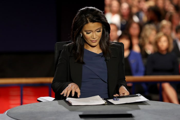 Sure, Holt was criticized for letting Trump yell over Clinton with ridiculous statements like "Wrong" and "False" while she was speaking, but few people went so far as to say he was just "reading through a list of questions." Quijano seemed to engage and correct and check the candidates much more often than Holt did. Is it a question of sexism, or was Quijano held to some weirdly higher standard because this is the only vice presidential debate and because it covered so many topics? That answer is unclear, but it's obvious that some of the criticism Quijano faced — like the comments about her eyelashes and the way the candidates cut her off and corrected her — seemed to be gendered and Holt didn't face similar standards.