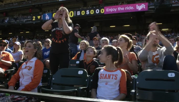 There was no faking it when it came to filming this episode. As CBS Sports reported, the Fuller House cast and crew took over AT&T Park on Oct. 1, 2015 when the Giants took on the Los Angeles Dodgers. And although Giants fans may have been excited at first — I mean, who wouldn't want to be potentially featured as a speck on a Netflix original series — that quickly turned into frustration.