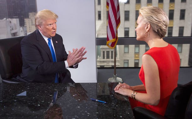 But now, in an interview nine months in the making (as Fox touted it), Kelly and Trump were finally going to sit down and hash it out in a primetime interview. “Nothing is off limits,” Kelly promised in the opening moments of the show, her first foray into primetime network interviews like those of Barbara Walters or Diane Sawyer. Unfortunately, the only thing that seemed off limits by the end of the hour-long program was good, hard-hitting journalism.