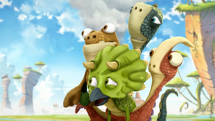 According to press materials sent to Romper, Gigantosaurus is based on Jonny Duddle’s children's book of the same title. The show chronicles four dinosaur BFFs — Rocky, Bill, Tiny, and Mazu — who go on adventures to learn about Gigantosaurus, "the biggest, fiercest dinosaur of all." As per the press release, in each episode, the foursome will go on a quest, "as they face their individual fears and work together to solve a problem. As the inquisitive Mazu, playful Tiny, timid Bill, and courageous Rocky aim to learn more about Gigantosaurus, they discover they each have something to learn from him, too!"