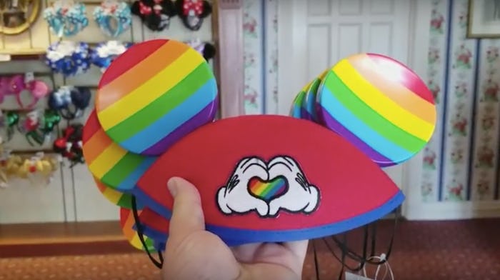 As if plain old Mickey Mouse ears didn't already put a smile on your face, Disney's new rainbow Mickey Mouse ears for Pride Month most definitely will. The ears, officially known as the "Mickey Mouse Rainbow Love hat," are on a red cap, with a cute little logo of Mickey's hands making a heart on the back, and the actual ears are striped in the colors of a rainbow and they retail for $18 at both the Disneyland and Disney World theme parks.