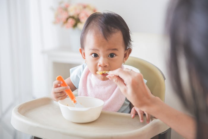 Angie Weiss, nutrition services director at Wichita Falls Area Food Bank in Texas, tells Romper that most babies will still get all the vitamins and minerals they need from breast milk or formula, but they need to explore with new foods.