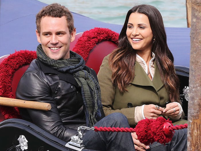 On the one hand, it's totally possible that Andi's intention in showing up randomly to surprise Nick is to win him back. Past contestants have spontaneously joined the show midway through in the hopes of competing for a chance at love once again. In fact, that's exactly what Nick himself did when he joined Kaitlyn Bristowe's season of The Bachelorette (his second of four times appearing on a Bachelor Nation show). But Nick joined Kaitlyn's season in the fourth week of the show, and Andi is showing up in the second-to-last week. Logically, it doesn't make a ton of sense that she'd wait that long or expect Nick to up and ditch all of the other women he'd spent two months wooing.