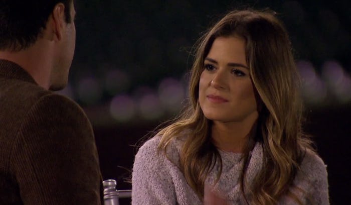 In the promo, we hear JoJo and Ben sitting on a bathroom floor talking about how Ben loves her but also loves Lauren. Cue sobs. It's a tough blow, and it's also so transparent that it worries me that he is preparing her for heartbreak. If he tells Lauren the same thing, then my theory will hop right in the trash, but if he tells JoJo that he also loves Lauren, but doesn't tell Lauren that he loves JoJo, then I think we all know that he's just slowly trying to plant the seed in JoJo's head that he will not be picking her.