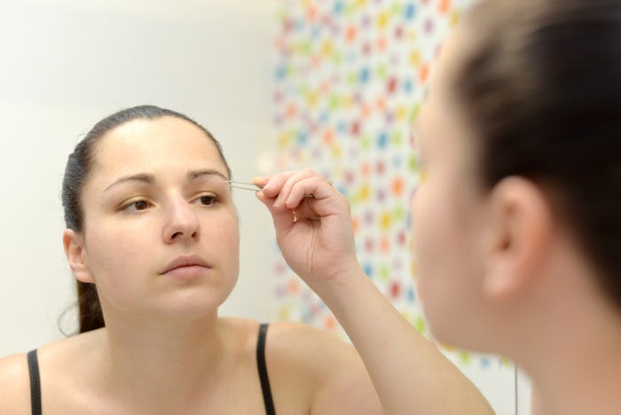 "When you tweeze your hair, it does tend to damage the hair follicle permanently, and it can cause the hair to grow back thinner, the same effect with waxing," Dr. Jennifer Haley, a board-certified dermatologist, tells Romper. "Every time that hair is torn out of the sheath, there's a little membrane round the hair, and it will damage it and it will grow back thinner." Because your hair will grow back thinner whenever you pluck, if you get a little bit over-excited with the tweezers — or have in the past — you'll likely find it more difficult to grow thick, full eyebrows in the future. Although there may be a few things you can do to encourage growth, you don't have a ton of options, so it's best to prevent over-tweezed brows if you can.
