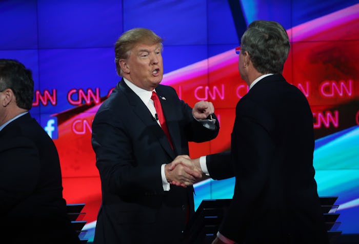 Later, they even fought again, with Wolf Blitzer trying to referee. Things ended when Jeb put Trump in his place: "Donald, you aren't going to insult your way to the presidency." Low blow, Bush.