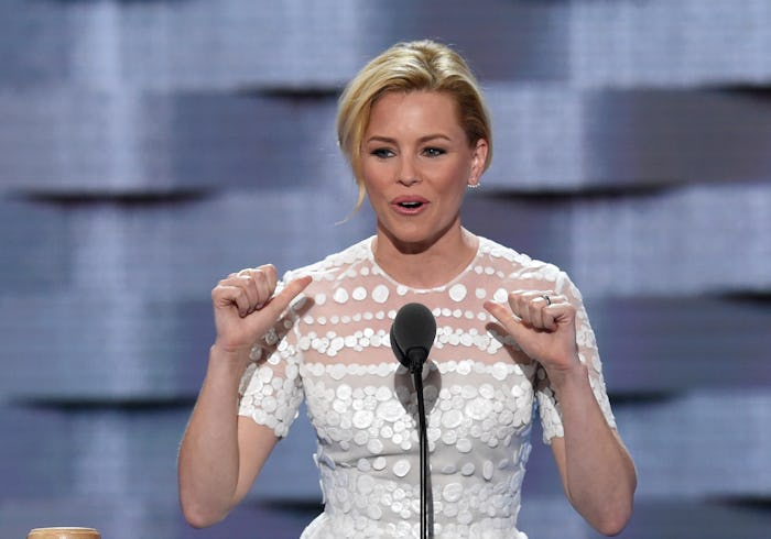 On Tuesday night, Elizabeth Banks took to the stage of the Democratic National Convention and proceeded to rip Republican presidential nominee Donald Trump a new one. The actress compared Trump's candidacy to The Hunger Games, the dystopian book and movie series for which she's perhaps most well-known. And she's not the first to equate the two. A quick search of Donald Trump Hunger Games jokes and memes proves that Banks is only one of many to notice the disturbing comparison.