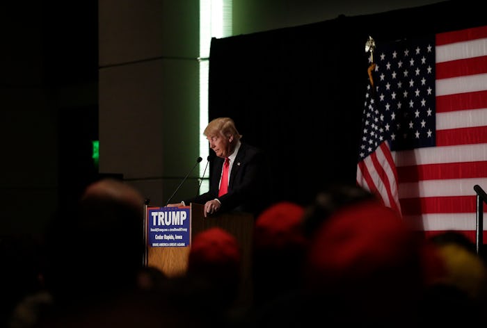 On Monday night, Trump gave a speech from Des Moines, joking about how one his backers told him early on not go to Iowa because he wouldn't "finish in the top ten." Trump then congratulated the other candidates and reiterated that he was "happy" with the way things worked out. Most importantly, Trump stayed on message. Before he left the stage, he took one more jab at former Secretary of State Hillary Clinton for having more "problems" than being behind in the Iowa caucus. Before he said goodbye to the state, he mentioned possibly buying a farm there. Because of course that's what he would do, right?